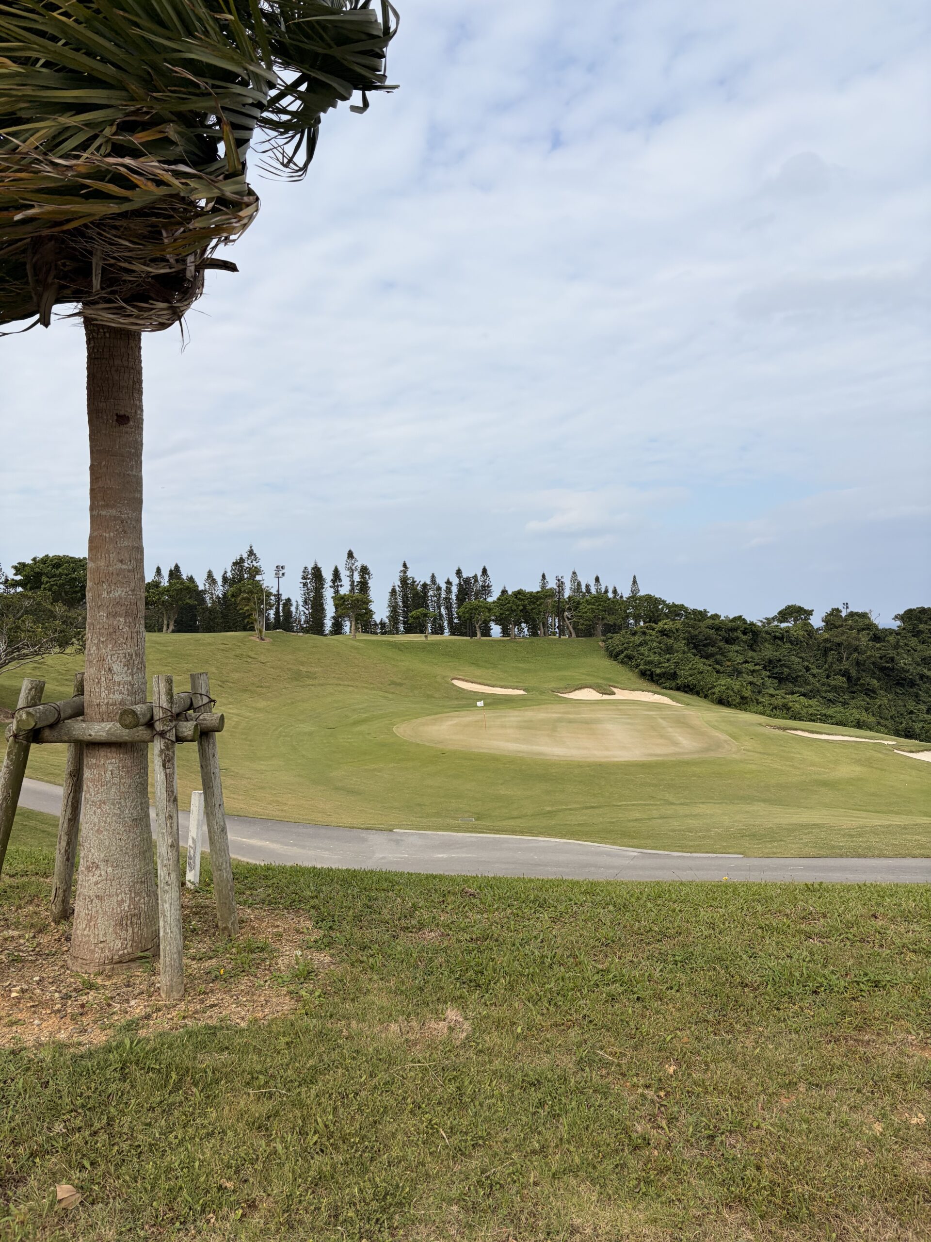 はるか本部半島や伊江島まで見渡せる壮大な景観を前にプレーするのは爽快。